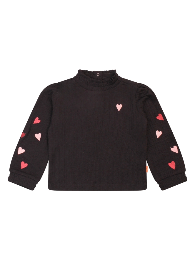 Deze schattige top voor babymeisjes is gemaakt van crincle stof voor een speelse textuur. De smock-afwerking langs de hals en mouwen zorgt voor een elastische, comfortabele pasvorm. Op de mouwen zijn geborduurde hartjes in verschillende kleuren verwerkt, wat de top extra vrolijk maakt.