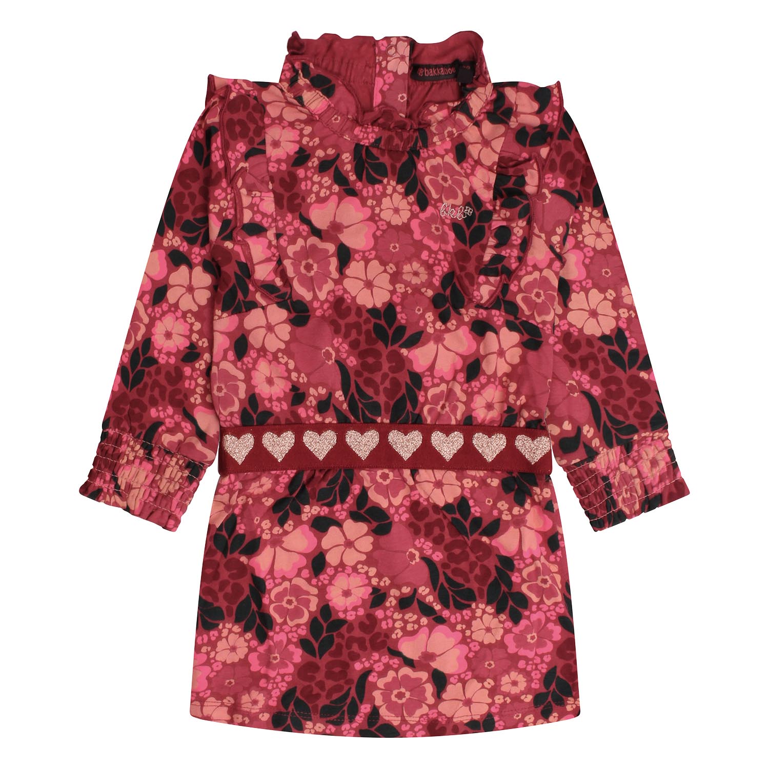 Leuk jurkje welke jouw meisje doet stralen. Vol met bloemen, hartjes in de elastische tailleband en mooie ruches op de schouder!