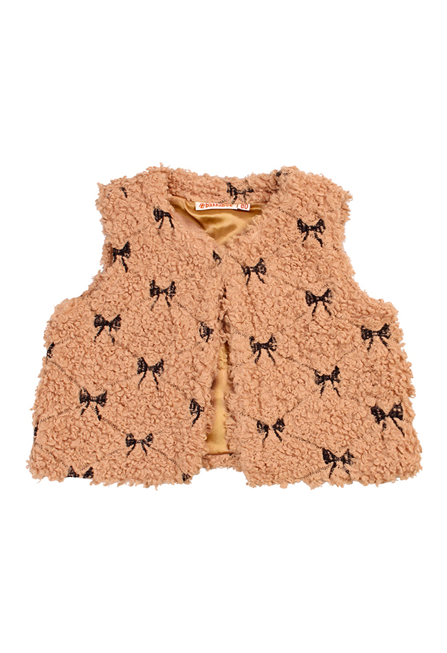 Prachtig teddy giletje met schattige strikjes. Dit giletje maakt het lookje van jouw kleintje helemaal af!