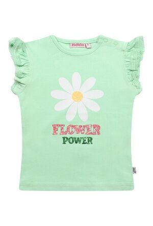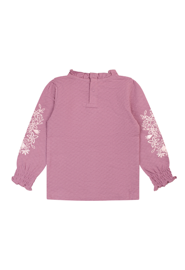 Deze schattige baby meisjes top is een echte must-have! De top is gemaakt van dobby-stof en afgewerkt met prachtig geborduurde bloemen op de mouwen. De smock turtle hals zorgt voor een lieve, speelse uitstraling. Perfect te combineren met een flared broek en een gilet voor een trendy en complete outfit.
