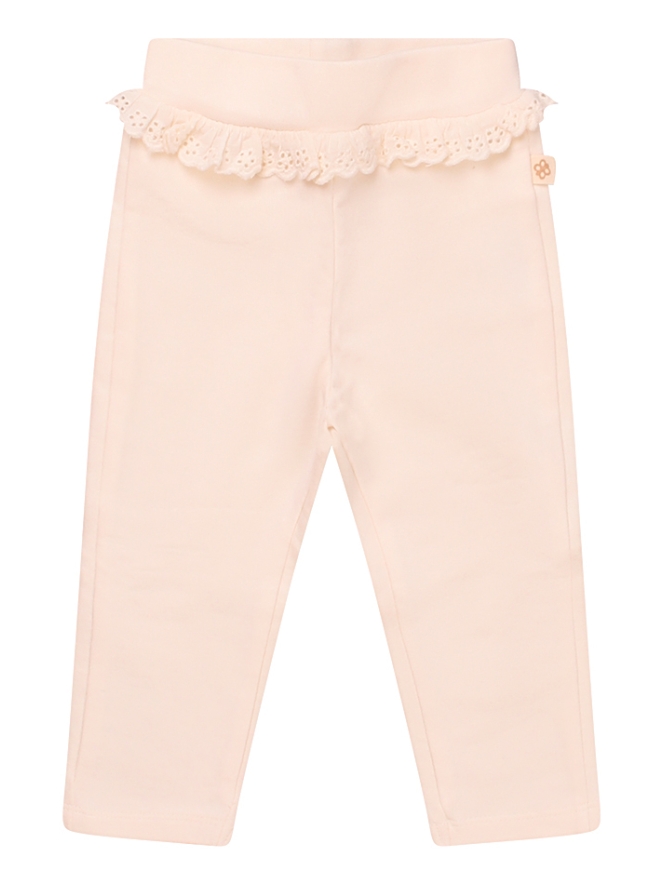 Dit schattige broekje voor babymeisjes is gemaakt van biologisch katoen en voelt heerlijk zacht aan op de gevoelige babyhuid. Het broekje is niet alleen comfortabel, maar ook bewust gekozen voor een duurzamere wereld. Een fijn detail is het kanten randje bij de elastische tailleband, dat zorgt voor een lieve en verfijnde uitstraling.