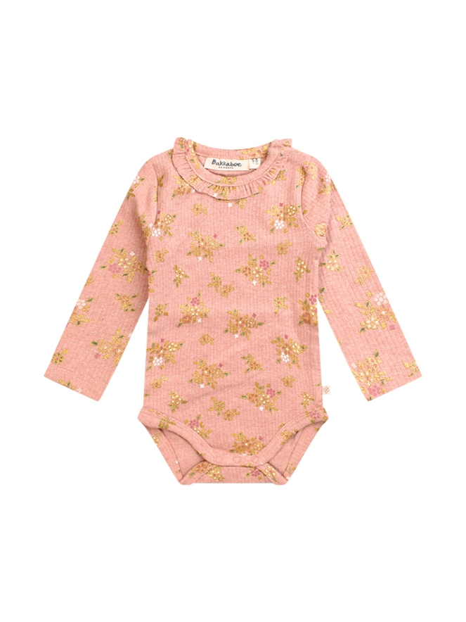 Dit schattige rompertje voor je babymeisje is een echt feestje! Het heeft een zachte ribstof met een subtiele glitter in de bloemenprint en een speelse ruches langs de halslijn. Gemaakt van biologisch katoen is het niet alleen stijlvol, maar ook zacht en comfortabel voor de gevoelige huid van je kleintje.