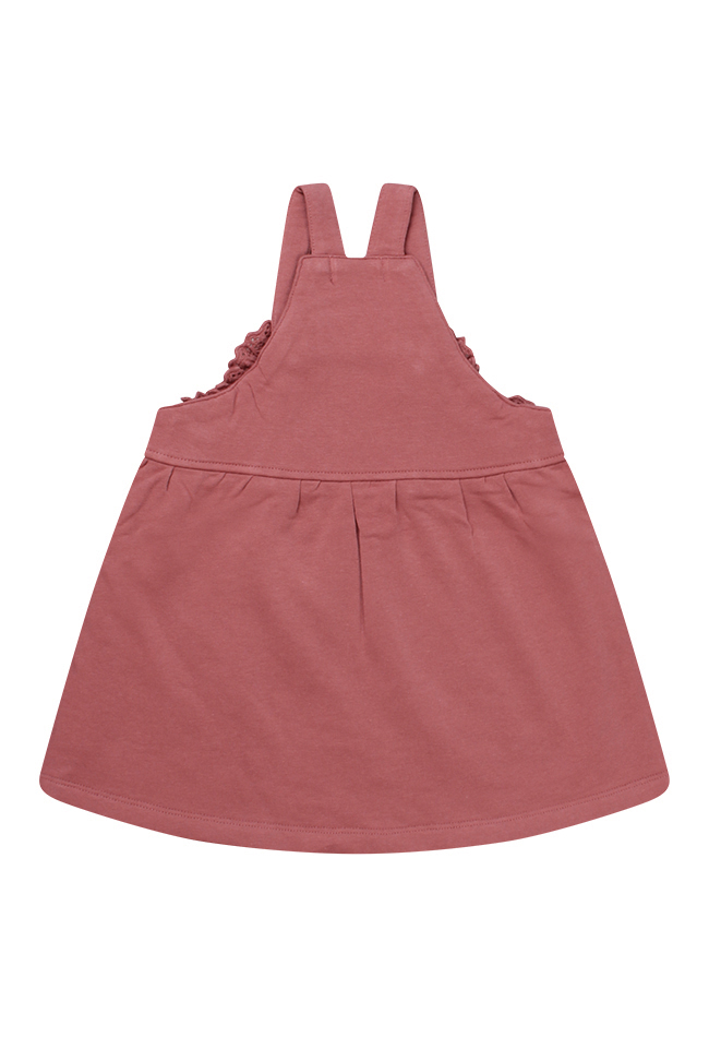 comfortabel voor de allerkleinsten en vriendelijk voor de planeet. Het jurkje heeft een klassieke overgooierstijl, afgewerkt met een broderie ruche langs de halsen een lief strikje op de voorkant. Perfect te combineren met een romper of shirtje voor een complete en knusse outfit.