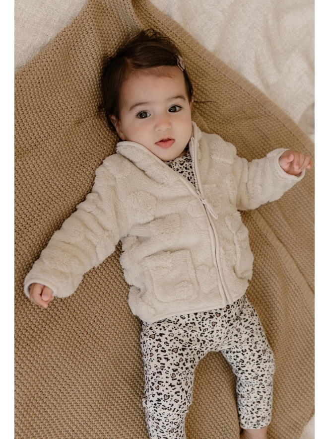 Hoe lief wil je het hebben?! Deze teddy jas met zachte hartjesprint is echt een droom voor jouw kleine meisje. De fluffy stof voelt heerlijk aan en dankzij de warme voering blijft je mini heerlijk knus. Perfect voor frisse wandelingen, en met zo?n cute look steelt ze ieders hart!