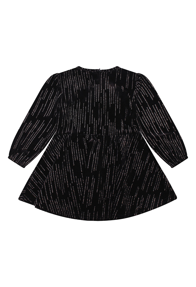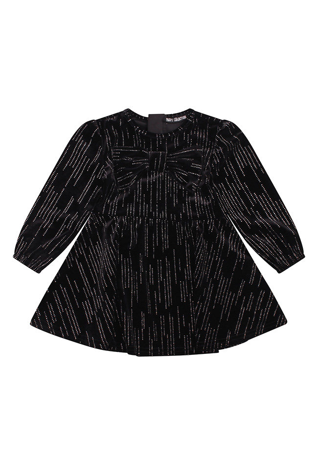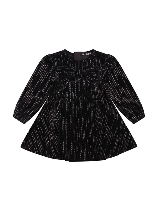 Dit schattige jurkje voor baby meisjes is gemaakt van zachte velvet met een subtiele glitters voor een feestelijke uitstraling. Het jurkje heeft een lieve strik en pofmouwen voor extra schattige details. Perfect voor de feestdagen.
