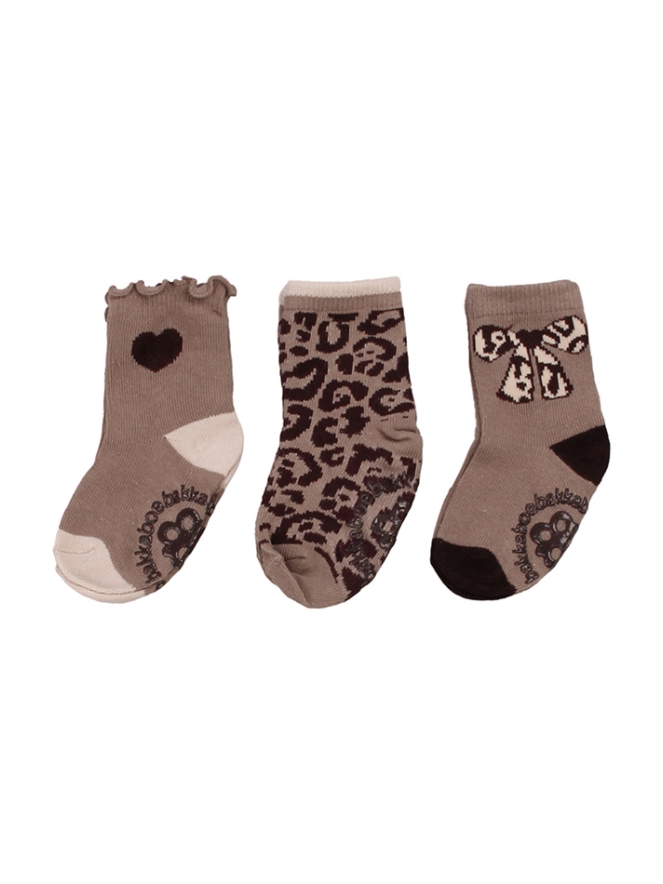 3-Pack sokjes met anti slip onder de voet met een strikjes / panter thema.