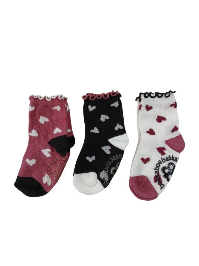 Zoete hartjes sokken in een 3-pack met anti slip onder de voet en een ruche rond de enkel.
