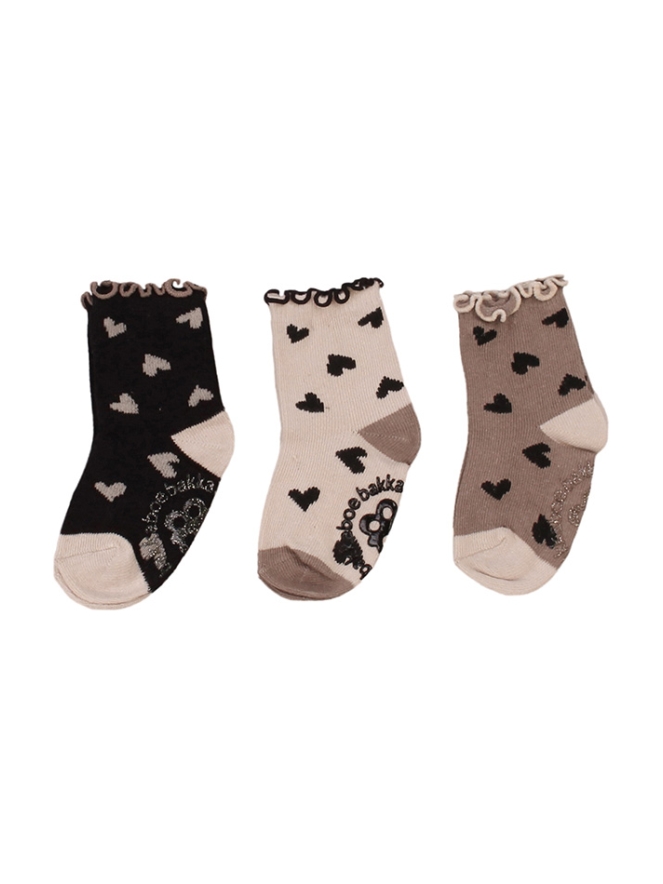 Zoete hartjes sokken in een 3-pack met anti slip onder de voet en een ruche rond de enkel.