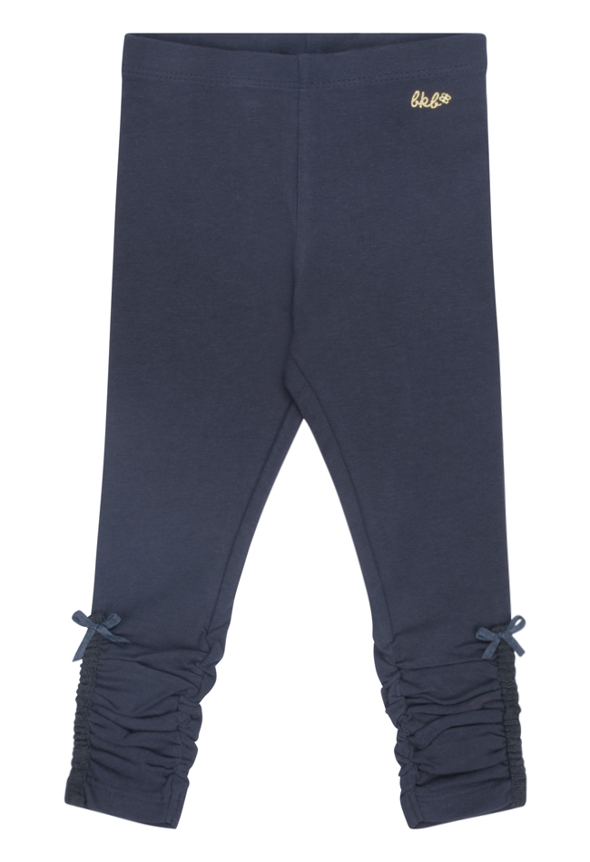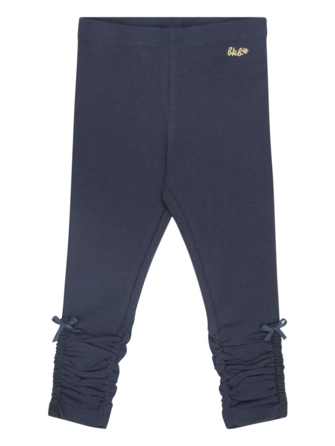 Legging van Bakkaboe. De legging heeft elastiek in de pijpen, dit zorgt voor een gerimpeld effect. Materiaal: 95% katoen, 5% elasthan. Wassen op 30 graden, niet stomen, niet bleken, niet in de droger, strijken op midden stand.