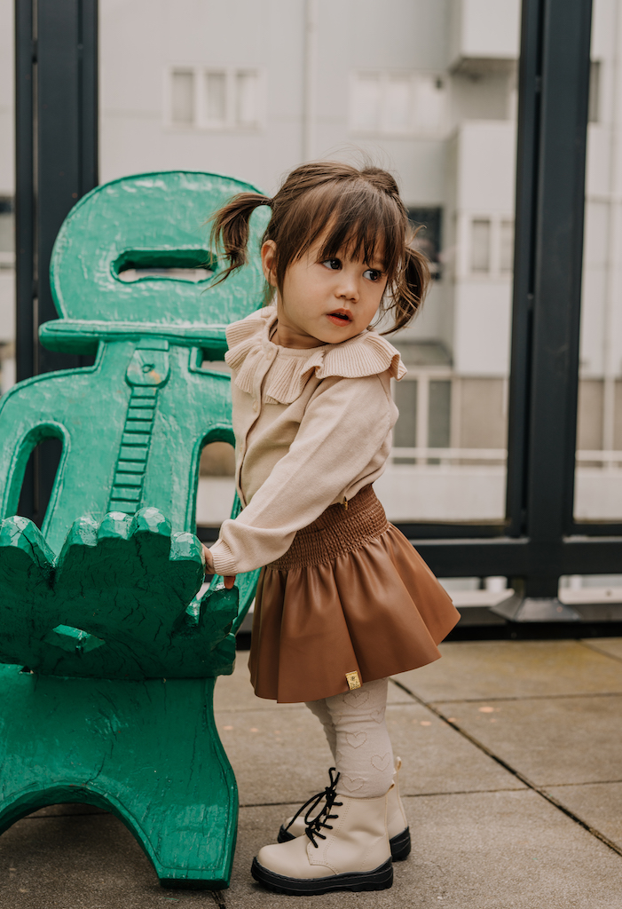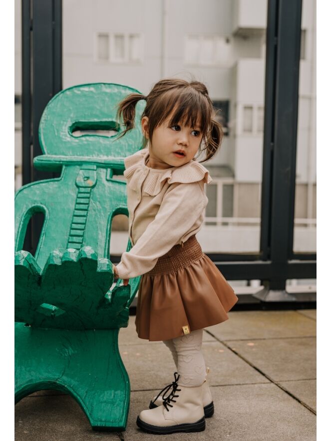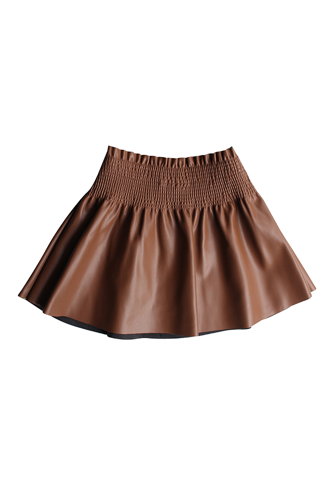 PU rokje van Bakkaboe. Het rokje heeft een skaterskirt model en een smock taille band. Het rokje is van PU materiaal. Materiaal: 100% polyurethan. Wassen op 30 graden, niet bleken, niet in de droger, niet strijken.