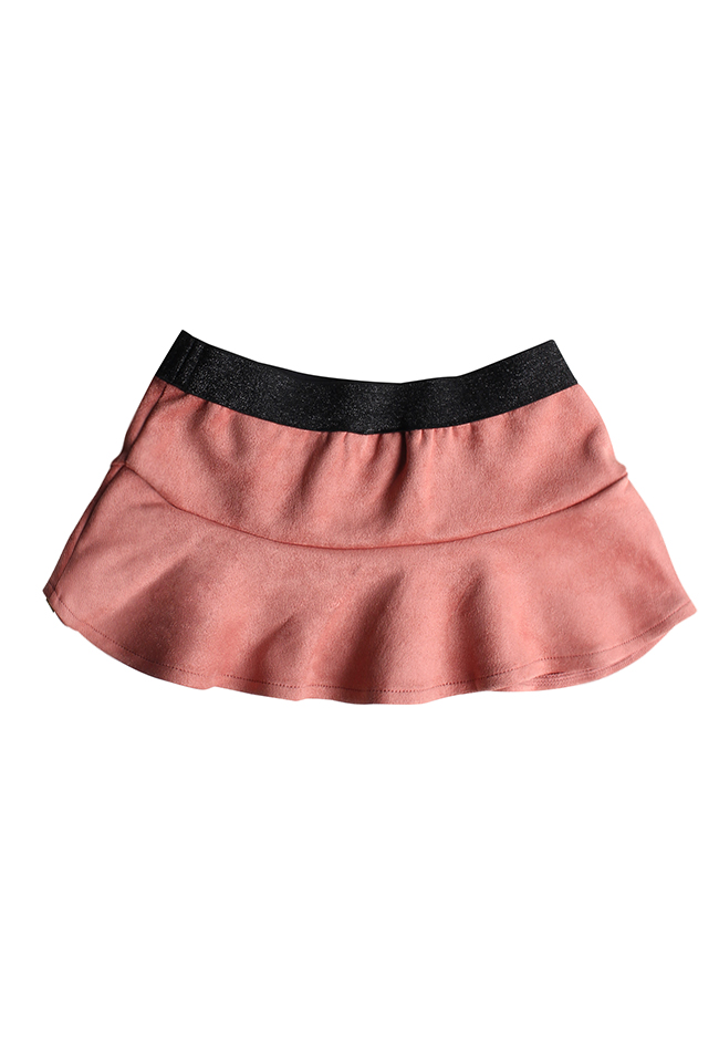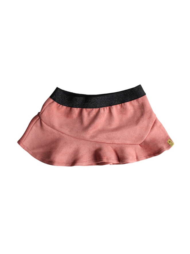 Suede rokje van Bakkaboe. Het rokje is van suede stof en heeft een glitter tailleband. Het rokje loopt uit. Materiaal: 95% polyester, 5% elasthan. Wassen op 30 graden, niet bleken, niet in de droger, kan gestreken worden.