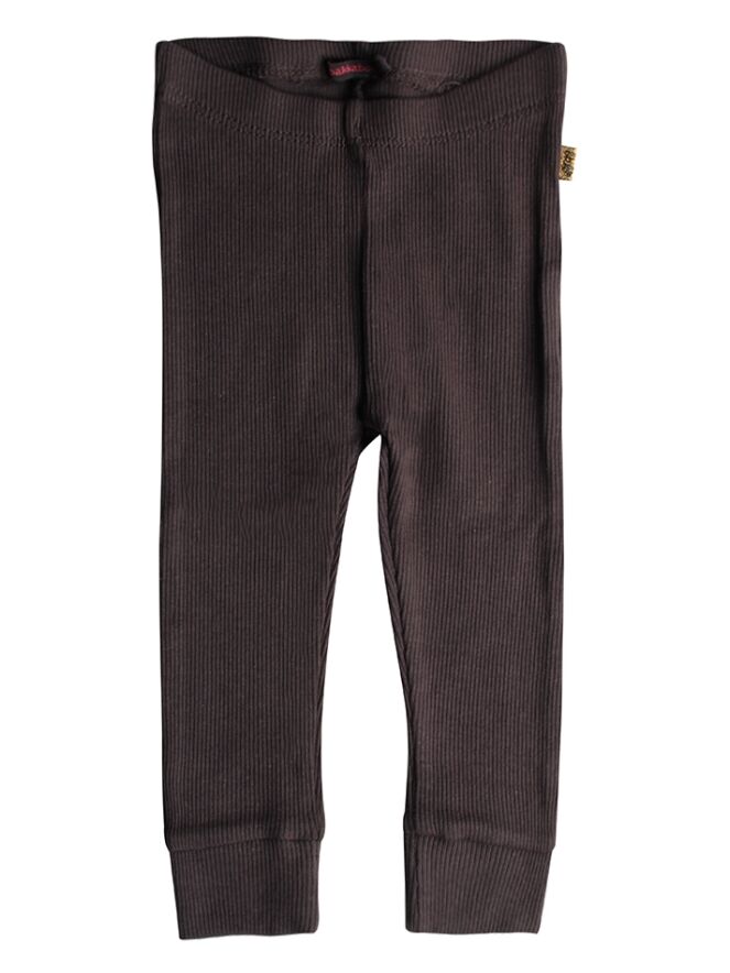 Rib legging van Bakkaboe. De legging heeft een rib en een effen kleur. Materiaal: 95% katoen, 5% elasthan. Wassen op 30 graden, niet bleken, niet in de droger, kan gestreken worden.