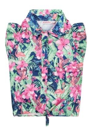 Jeans van Bakkaboe. De jeans hebben veel stretch en elastieken taille met sier knopen. Materiaal: 70% katoen, 28% polyester, 2% elasthan. Wassen op 30 graden, niet bleken, niet in de droger, kan gestreken worden.