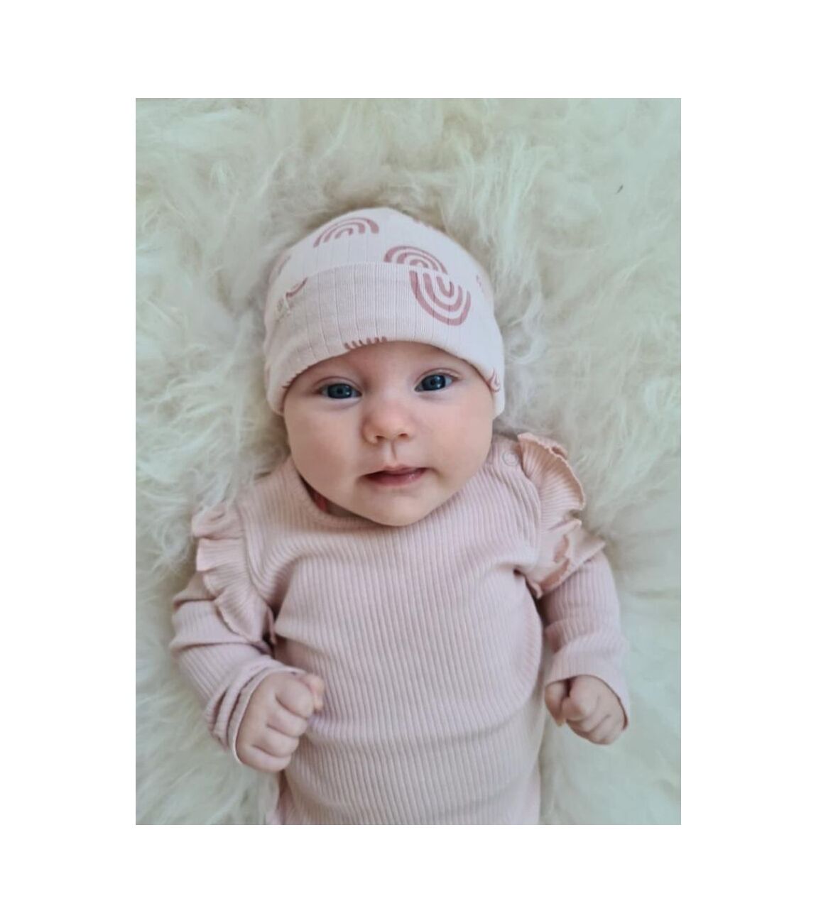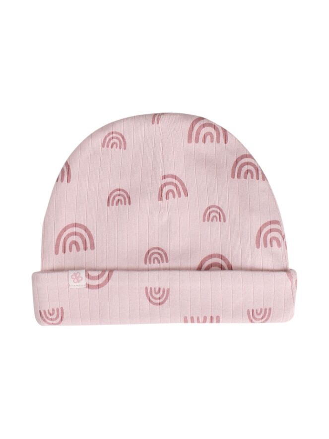 Dit supersofte baby mutsje heeft een omslag en is gemaakt van fijne ribkatoen, wat zorgt voor een comfortabele pasvorm. Het mutsje heeft een all-over regenboog print. Een schattig en praktisch accessoire om je kleintje lekker warm te houden!