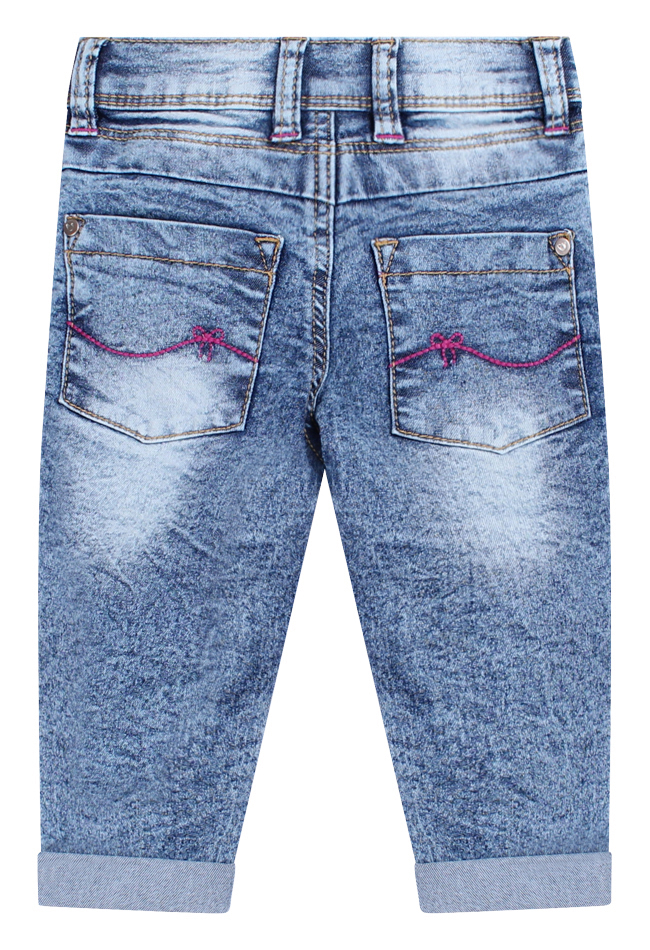 Leuke denim stretch jeans voor kleine meisjes. En omdat kleine meisjes groter worden is dit spijkerbroekje verstelbaar in de taille met elastiek en knoopjes. Handig meegroei broekje dus! Draag de broekspijpen rechtuit of omgevouwen voor een leuke vlotte look! Deze broek is verkrijgbaar in drie wassingen.