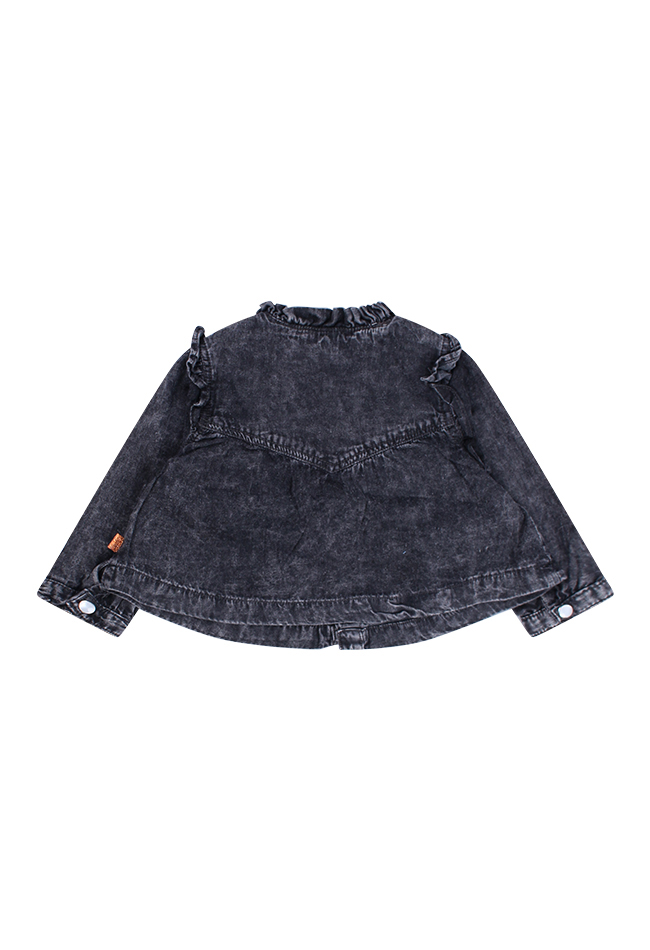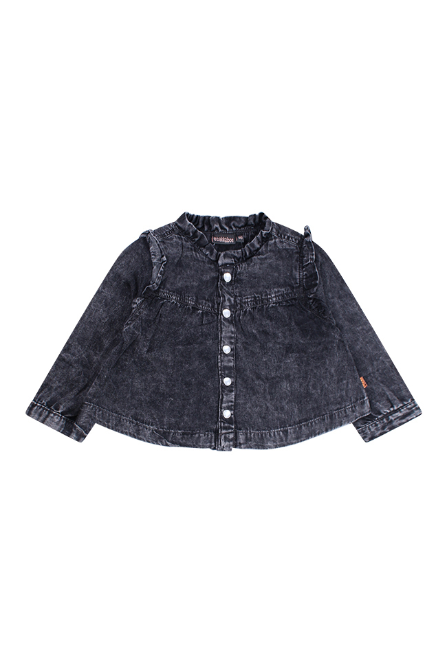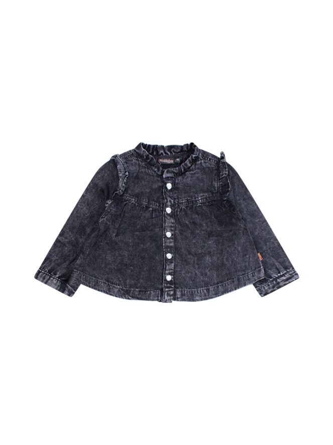 Dit fraaie blousje met drukknoopjes als pareltjes heeft een leuke ruche rond de hals en over de shouder. De denim stof is soepel vallend en draagt daardoor makkelijk en comfortabel.