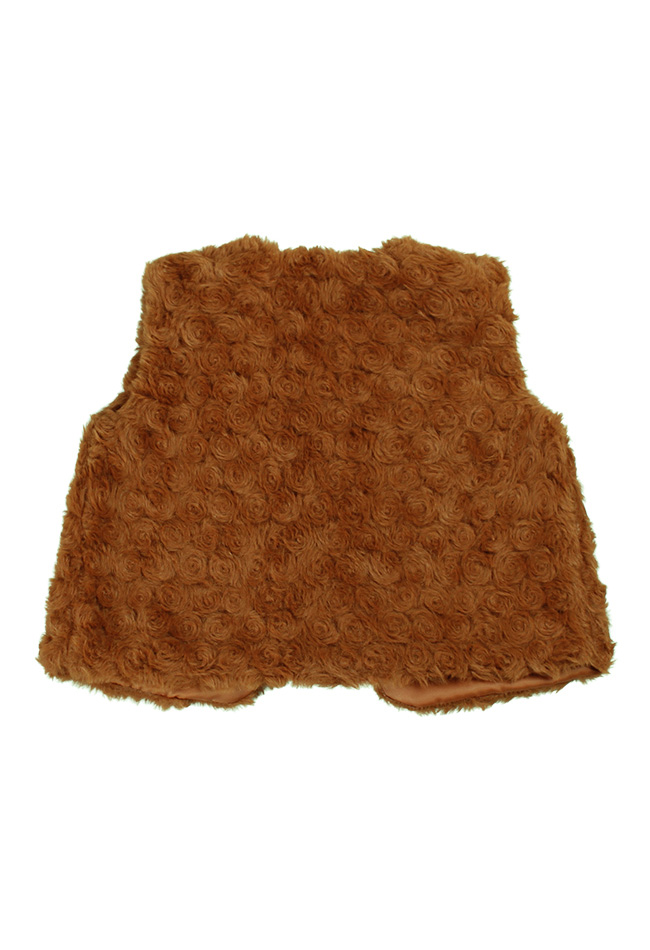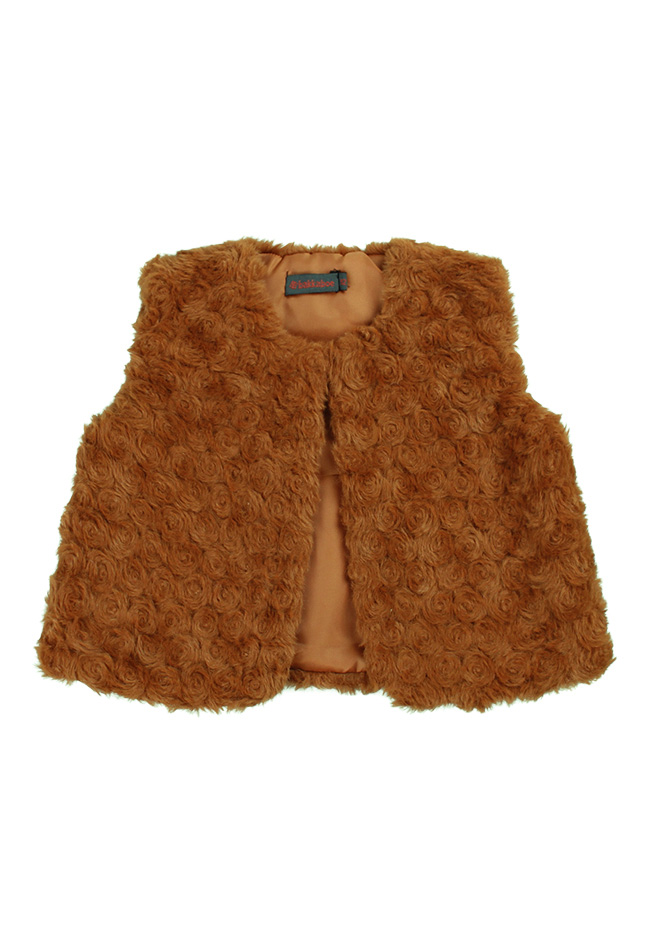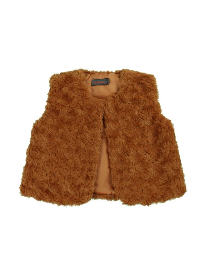 Pluche giletje voor baby meisjes van Bakkaboe. Dit giletje sluit met een knoopje.