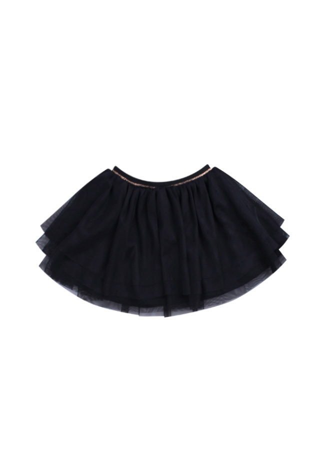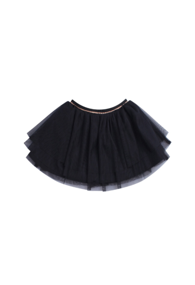 Mesh rokje met een subtiele glitter in de elastische tailleband. Super leuk te combineren met een legging/maillot en blouse voor een speelse, stijlvolle look!