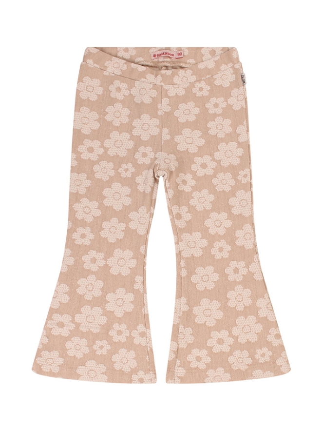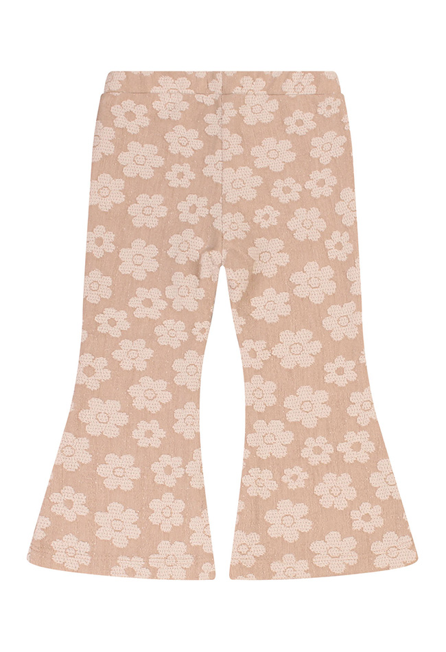 Deze flared broek voor baby meisjes heeft een subtiele bloemenprint die in de stof is geweven in een lichtere kleur. Combineer de broek met een denim jasje en een T-shirt voor een schattige en modieuze outfit.
