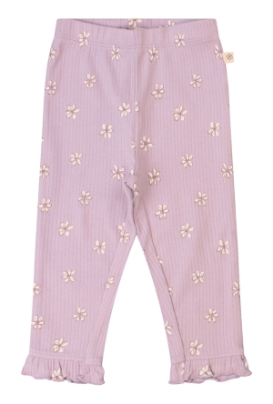 Fijne basic legging met een fijn en sierlijk ribje in de stof. Deze legging voor de pasgeborene is goed rekbaar, zit comfortabel door de elastische tailleband en heeft een mooie ruche rond de enkel.