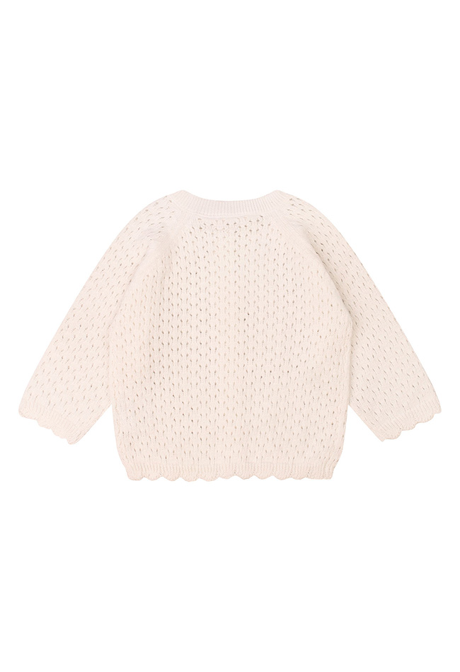 Prachtig vestje van de Bakkaboe Newborn collectie. Dit vestje is gemaakt van Bio katoen garen. Mooi fijn gebreid vestje met een mooi motief. De houtlook knoopjes maken het helemaal af!