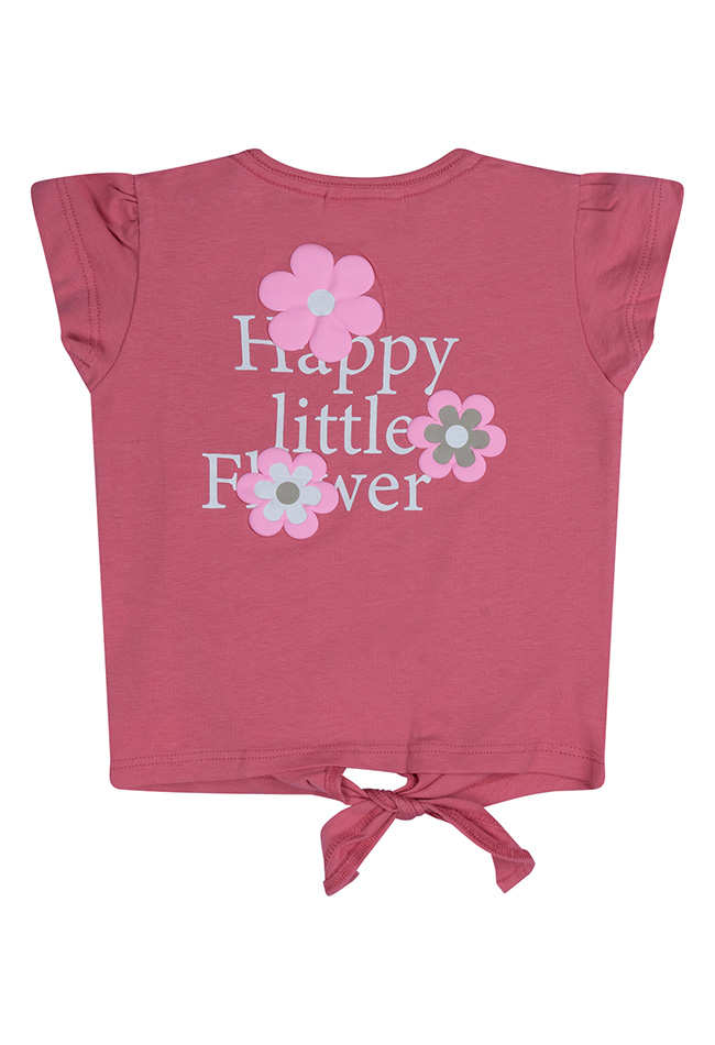 Happy little flower look at this! Dit leuke knoop T-shirtje heeft een vrolijke print voor en achterop. Leuk te dragen op korte broeken of rokjes. You deside!