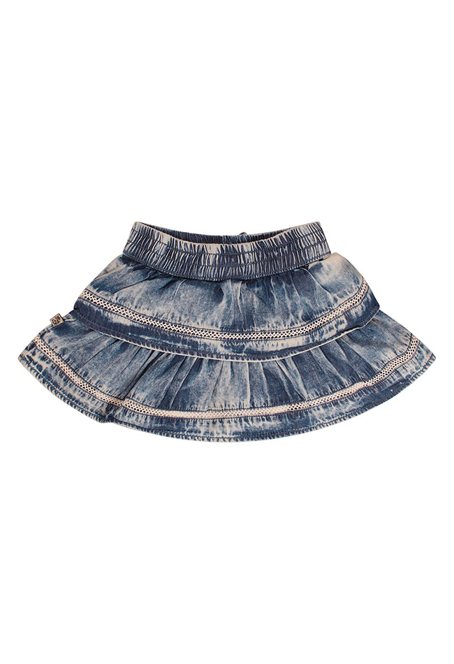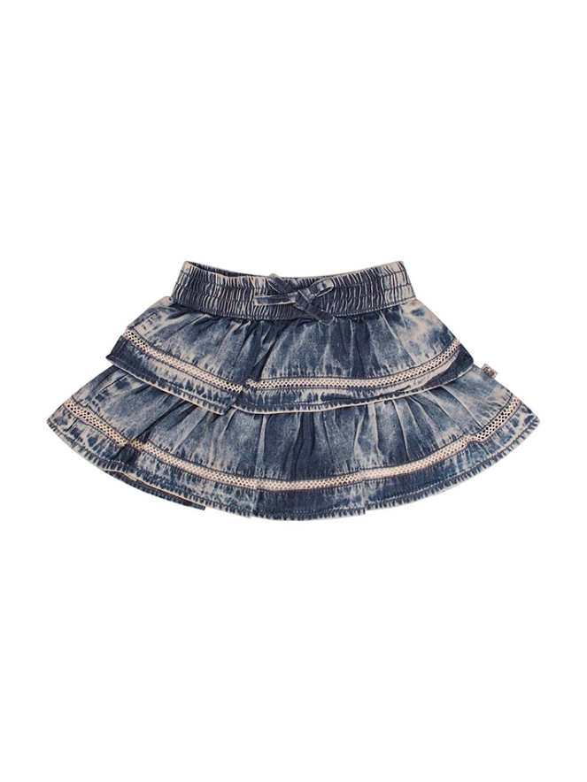 Deze schattige babymeisjes rok van Bakkaboe is een perfecte combinatie van comfort en een lieve uitstraling. Gemaakt van zachte chambray stof heeft de rok een denim look, maar voelt hij licht en soepel aan. De rok heeft een strokenmodel, wat zorgt voor een speels en zwierig effect bij elke beweging. Het kleine strikje geeft een extra schattig detail. Dankzij de elastische tailleband is de rok makkelijk aan te trekken en zit hij altijd comfortabel.