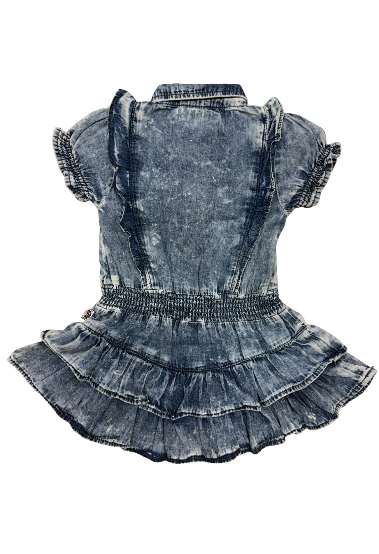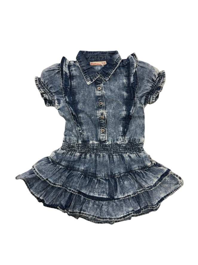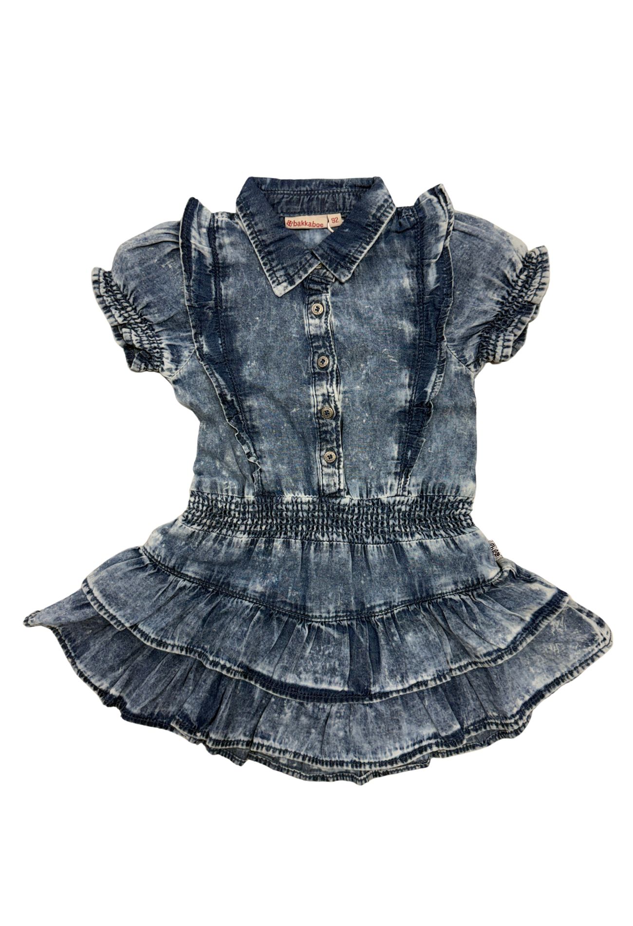 Deze schattige babymeisjes jurk van Bakkaboe is perfect voor een zomerse en feestelijke look. Gemaakt van zachte chambray stof heeft de jurk en denim uitstraling, maar voelt hij licht en comfortabel aan voor de gevoelige huid van je kleintje. De jurk heeft een strokenrok die zorgt voor een speels en zwierig effect. De smockband in de taille biedt extra comfort en een mooie pasvorm. De klassieke kraag en korte pofmouwen geven de jurk een lieve en stijlvolle uitstraling. Dankzij de korte lengte is deze jurk ideaal voor warme dagen.