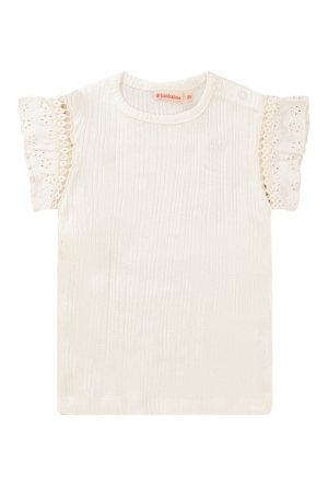 T-shirt voor de baby meisjes van Bakkaboe met een grote tekstprint voorop. Aan de onderkant zit een roezelrandje.Kwaliteit: 95% katoen, 5% elastane.