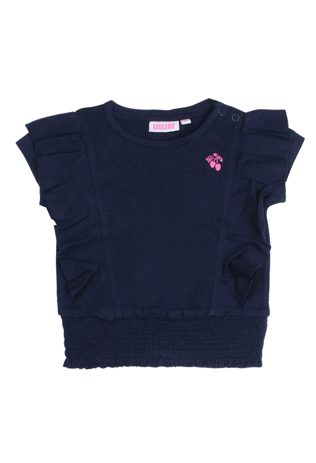 T-shirt voor de baby meisjes, het t-shirt heeft ruches langs de voorkant en aan de onderkant zit een elastieken band