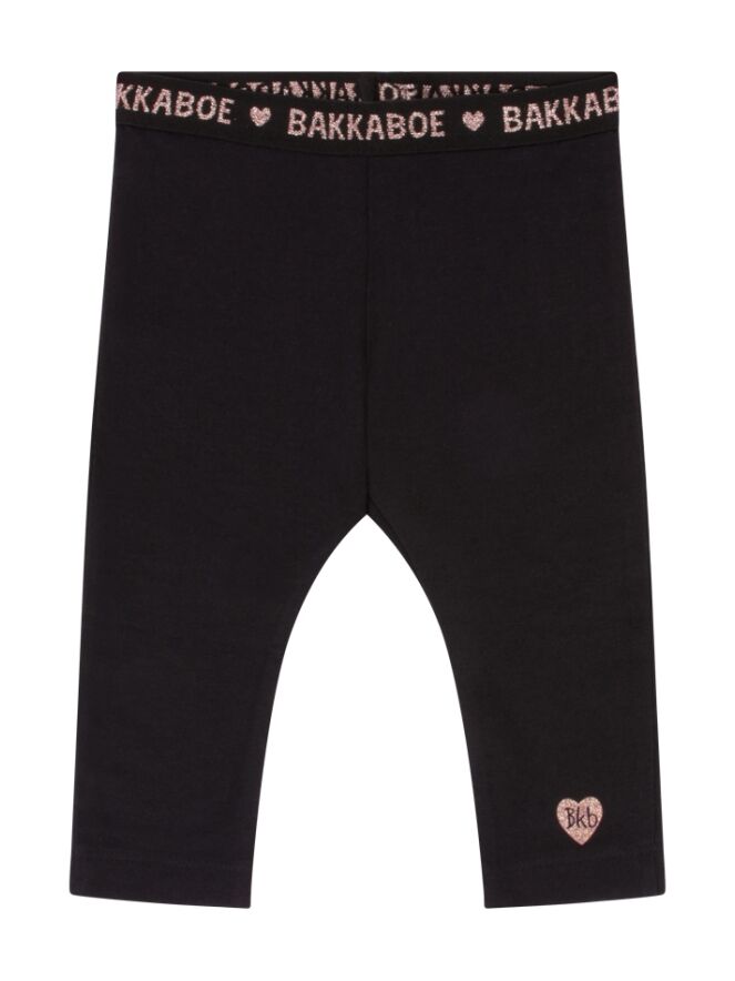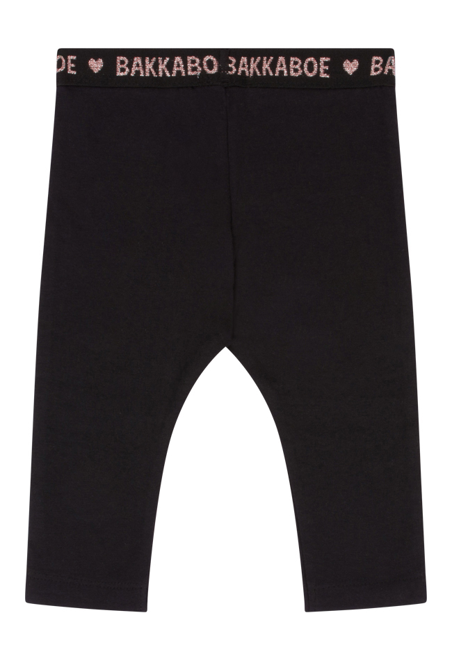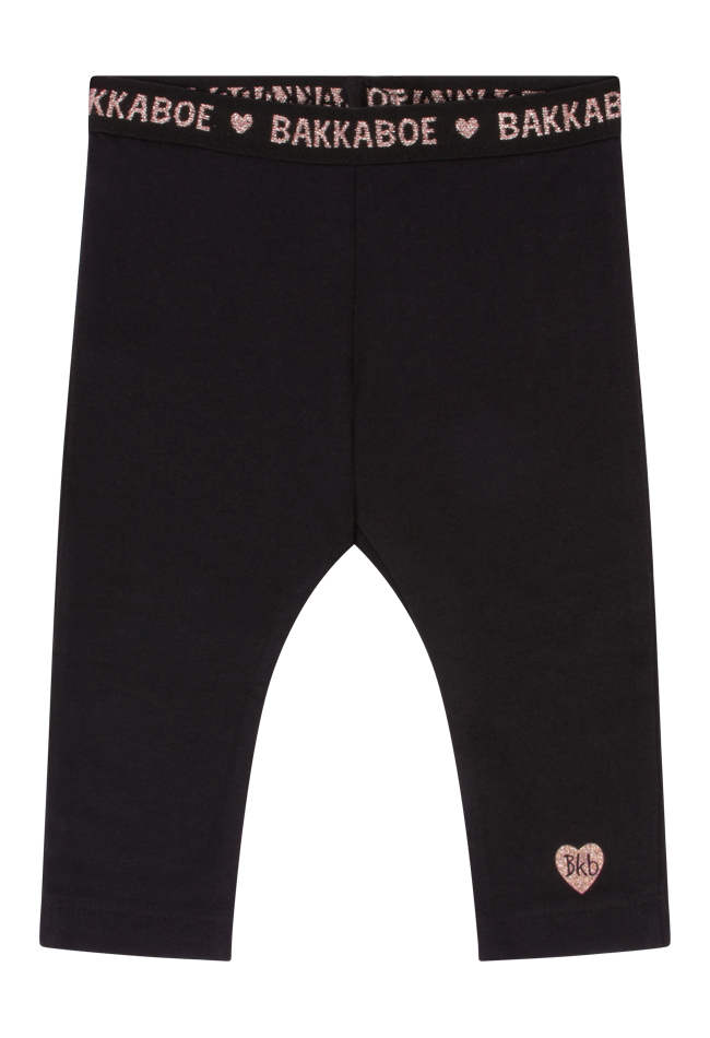 Leggin van Bakkaboe. Effen legging met een elstieken logo band. De legging heeft een kortere lengte. Materiaal: 95% katoen, 5% elasthan. 30 graden wassen, niet bleken, niet in de droger, lauw strijken.