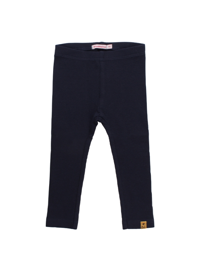 Legging van Bakkaboe. De legging is van rekbare ribbrei. Materiaal: 95% katoen, 5% elasthan. 40 graden wassen, niet bleken, niet in de droger, koud strijken.