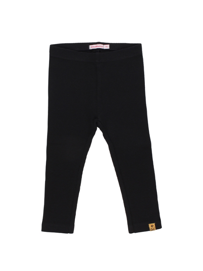 Legging van Bakkaboe. De legging is van rekbare ribbrei. Materiaal: 95% katoen, 5% elasthan. 40 graden wassen, niet bleken, niet in de droger, koud strijken.
