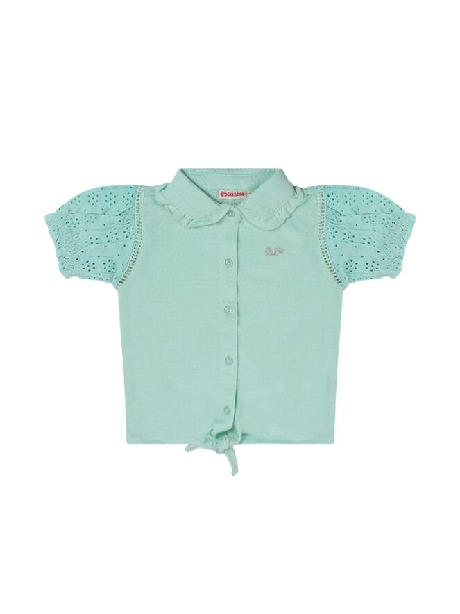 Blouse met korte broderie pofmouwen een kraagje en een knoopdetail aan de voorkant.