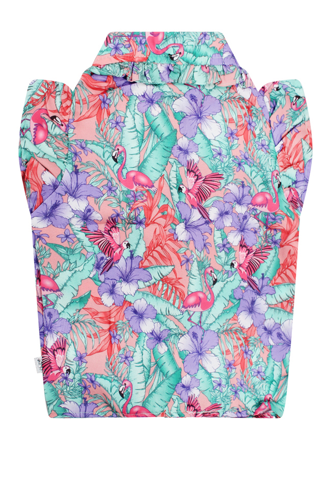Blouse met een allover tropische print, ronde kraag, vlindermouwen en een strikdetail aan de voorkant.