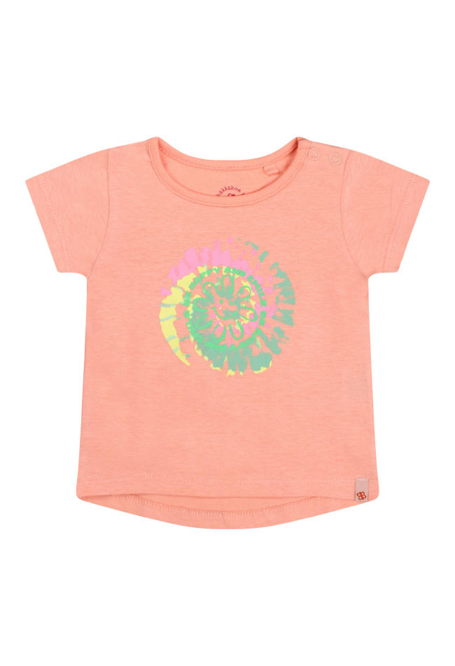 Dit t-shirt heeft een batik/bloem print, korte mouwen en een ronde hals. Bij de kleinste maten zitten op de schouder twee drukknoopjes zodat het aan/-uittrekken gemakkelijker gaat. Dit t-shirt is verkrijgbaar in drie verschillende zomerse kleuren.