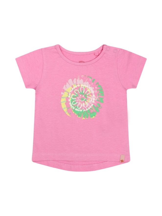 Dit t-shirt heeft een batik/bloem print, korte mouwen en een ronde hals. Bij de kleinste maten zitten op de schouder twee drukknoopjes zodat het aan/-uittrekken gemakkelijker gaat. Dit t-shirt is verkrijgbaar in drie verschillende zomerse kleuren.