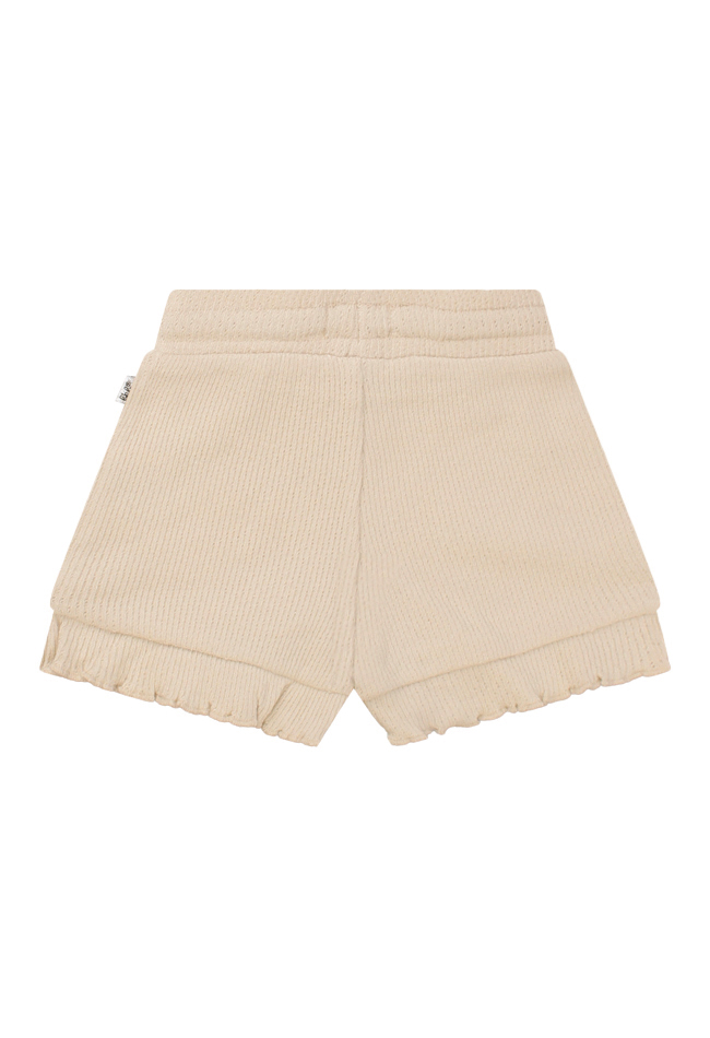 Dit mooie dun gebreide korte broekje voor baby meisjes heeft een ruche afwerking ronde de pijpen en een mooi koord in de taille. Wist je dat er een bijpassend hemdje verkrijgbaar is onder art.nr. Z90101 ?
