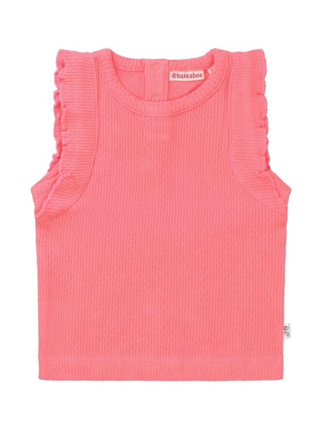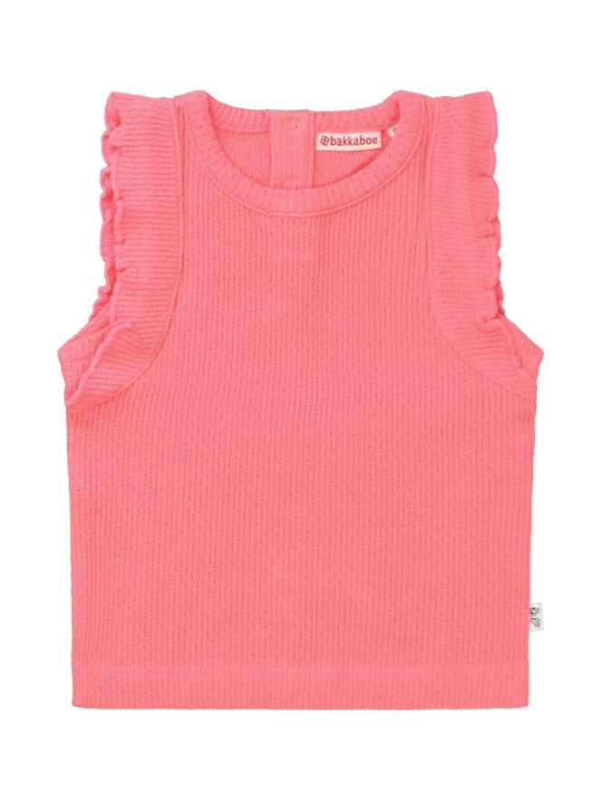 Mooie fijn gebreide hemdjes voor baby meisjes met een mooie ruche afwerking over de schouder welke verkrijgbaar is in 4 kleuren. Een bijpassend broekje is verkrijgbaar onder art.nr. Z90100.