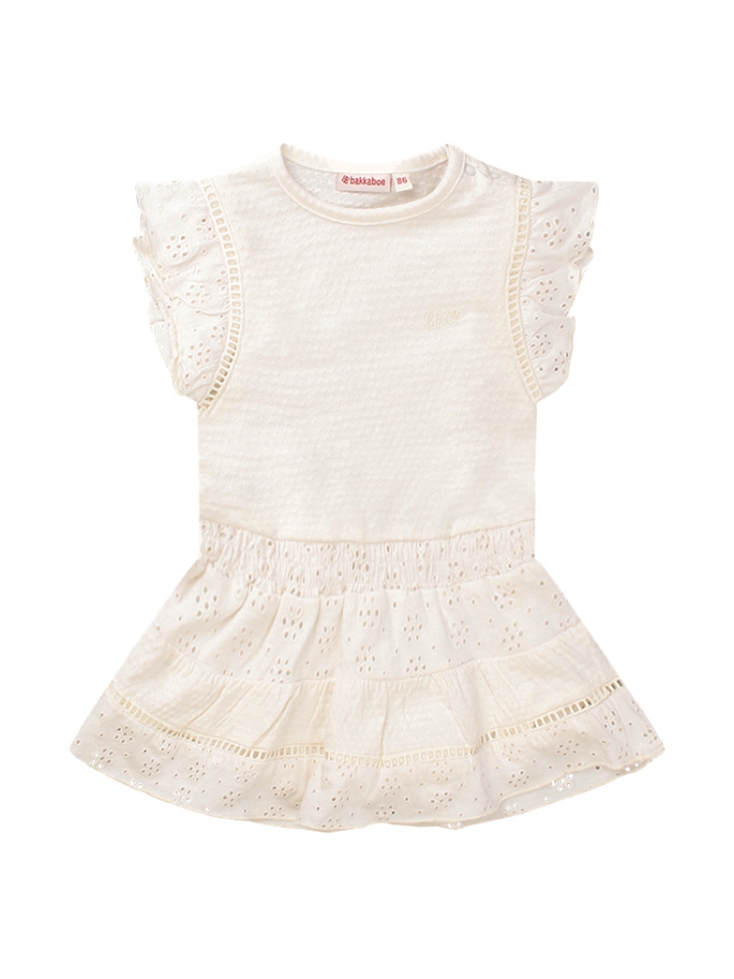 Vrolijk zomers jurkje van ons eigen baby meisjes merk Bakkaboe. Dit jurkje heeft leuke broderie afwerkingen in de rok en op de schouder. Leuk met of zonder legging eronder! Ook leuk met een denim giletje of spijkerjasje.