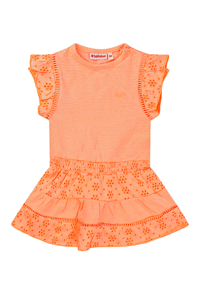 Vrolijk zomers jurkje van ons eigen baby meisjes merk Bakkaboe. Dit jurkje heeft leuke broderie afwerkingen in de rok en op de schouder. Leuk met of zonder legging eronder! Ook leuk met een denim giletje of spijkerjasje.