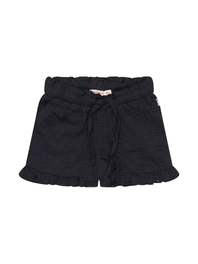 Deze schattige broderie short voor baby meisjes van Bakkaboe is perfect voor de warme dagen! Gemaakt van een comfortabele mix van katoen en polyester, met een zachte voering voor extra comfort. Het design heeft een leuke ruche voor een speelse uitstraling.