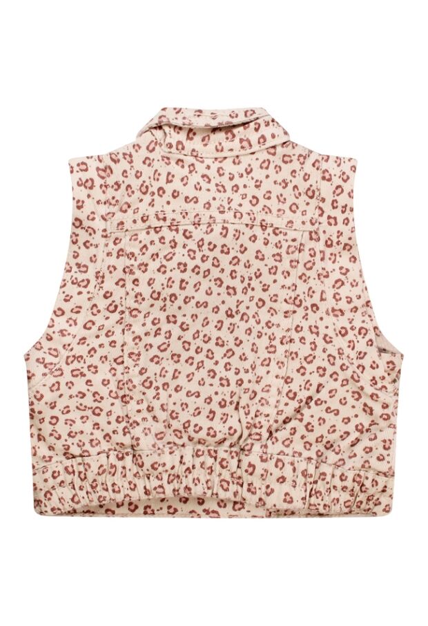 Dit trendy gilet met panterprint is een echte must-have voor jouw kleintje! Gemaakt van een zachte en stretchy katoenmix voor optimaal comfort. Combineer met de bijpassende broek voor een complete look!