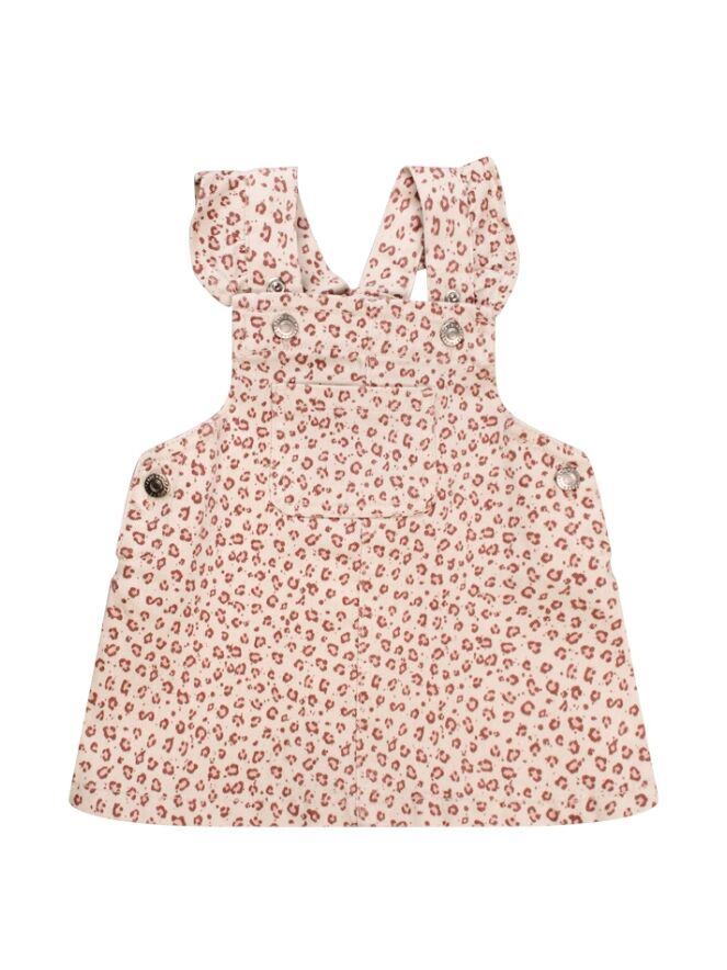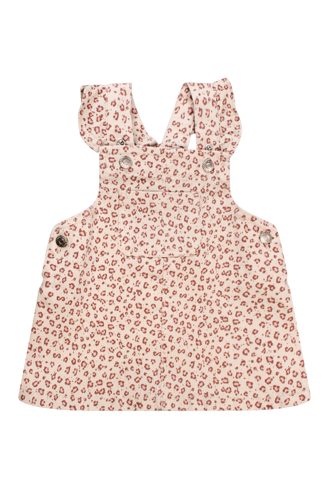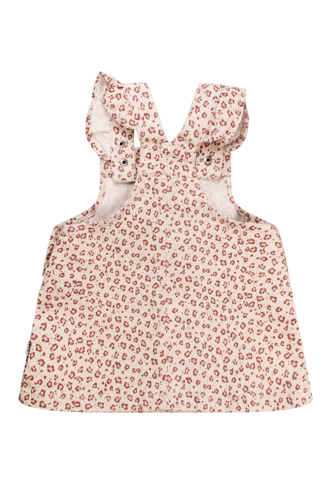 Deze schattige jurkje (salopette) voor baby meisjes is perfect voor de zomer van 2025! Gemaakt van een comfortabele katoenmix met een vleugje elastaan, heeft de jurkje een stoere panterprint en speelse ruches. De handige drukknopen zorgen ervoor dat de jurkje makkelijk aan- en uit te trekken is.