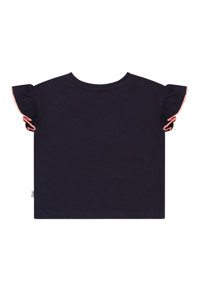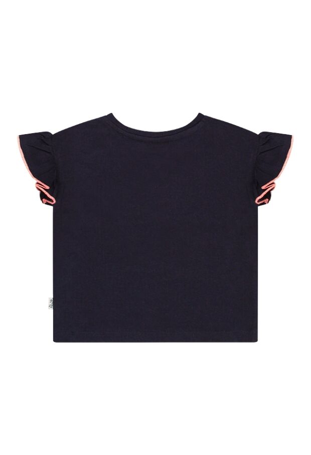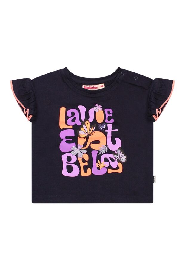 Lavie est belle! Dit vrolijke T-shirt heeft een ruchemouw met contrasterend randje en natuurlijk het leven is mooi. Dus geniet en laat haar dit mooie shirtje dragen en ze zal stralen.