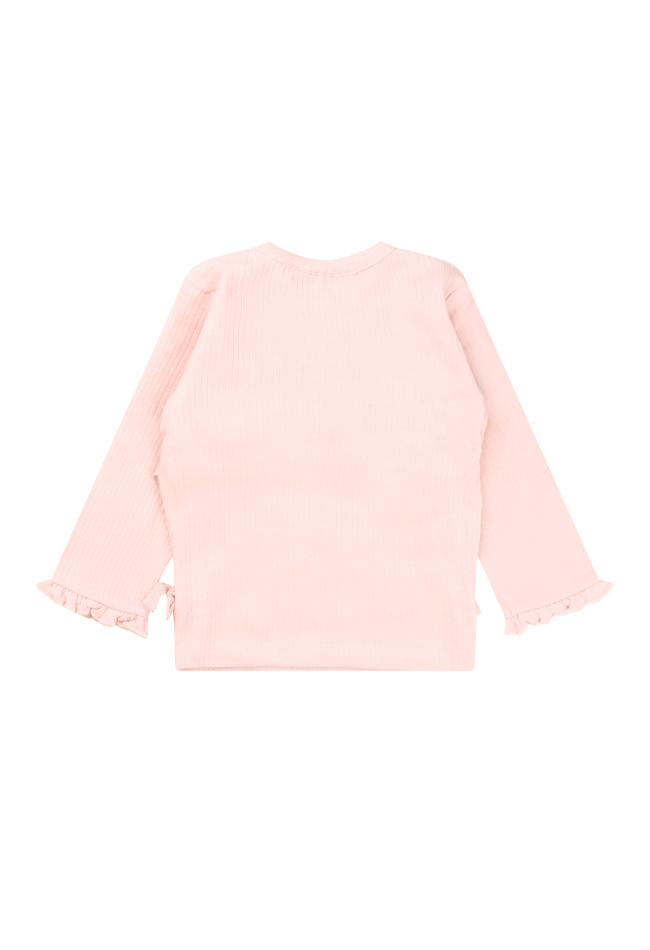Wrap en ready to go met dit leuke overslag shirt voor de aller kleinste meisjes. De overslag sluit met 2 strikjes en de flap eronder zit vast met drukknoopjes. Dus niet alleen leuk voor het oog ook enorm praktisch!