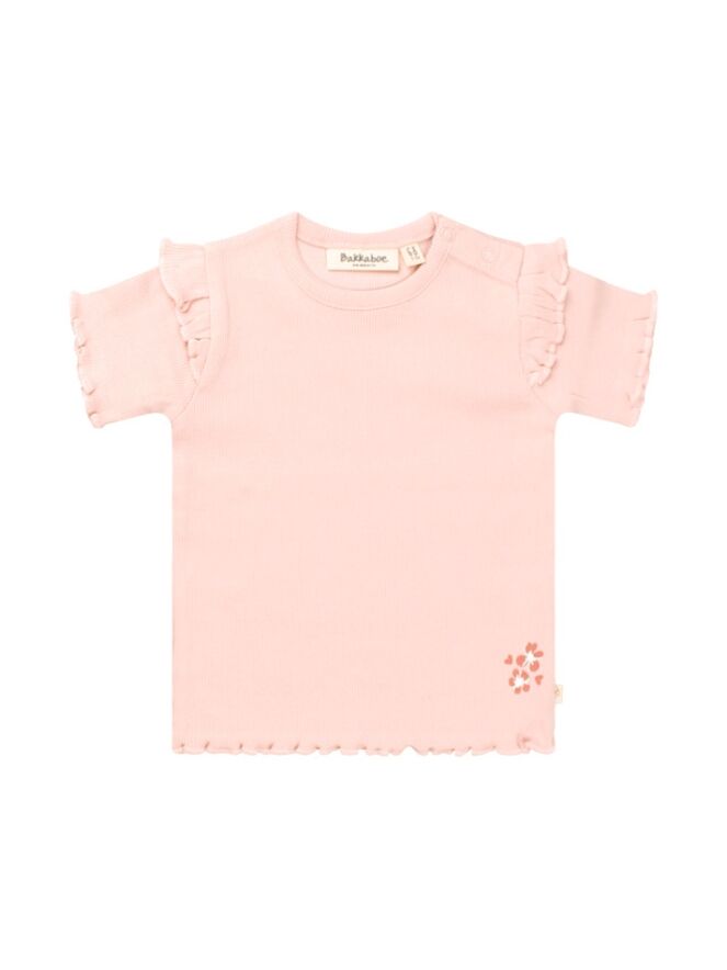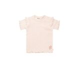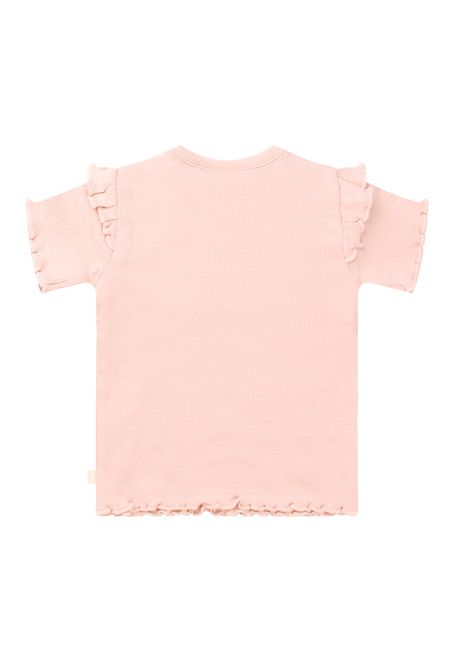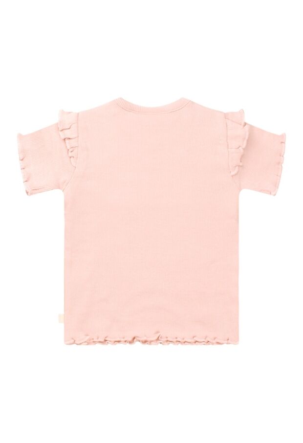Dit schattige newborn meisjesshirt is perfect voor je kleintje! Gemaakt van zachte bio-katoen/lycra ribstof voor optimaal comfort en stretch. De schattige ruches en lieve bloemetjes- en hartjesprint maken het extra bijzonder. Combineer met het bijpassende broekje of andere items uit de newborn collectie!