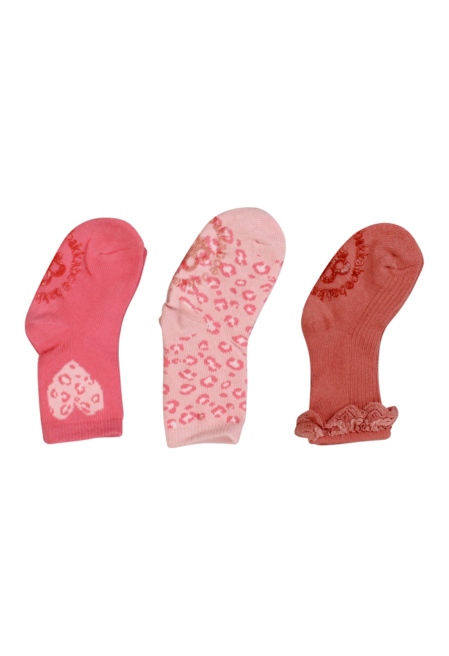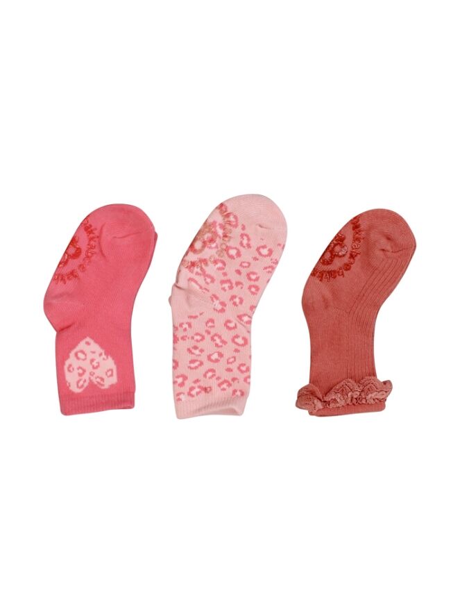 3-Pack sokken voor baby meisjes met normale schacht en antislip onder het voetbed. Met panter en rib patroon.
