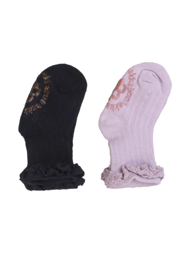 2-Pack sokken met broderie ruche rand en anti slip onder het voetbed.
