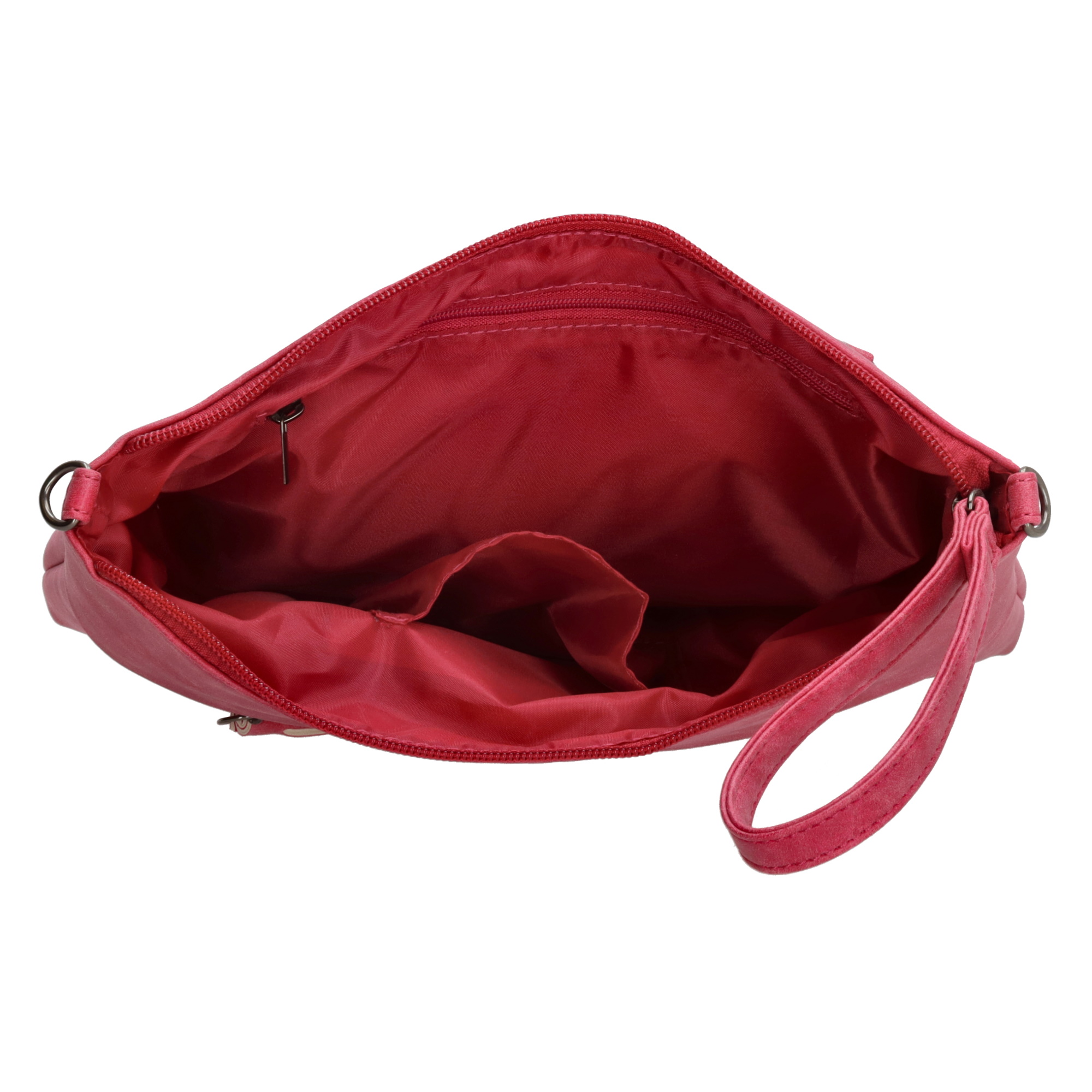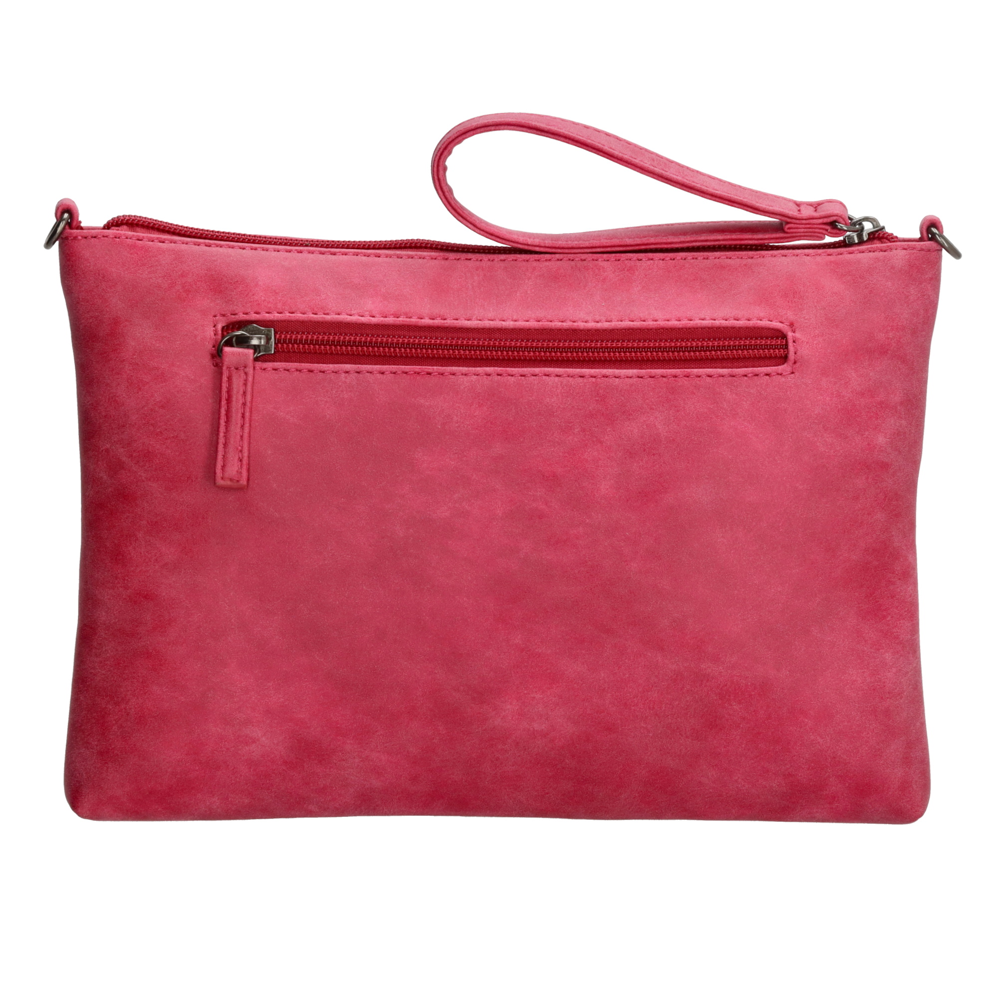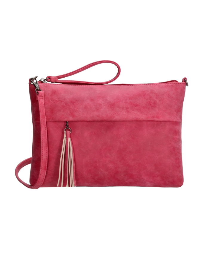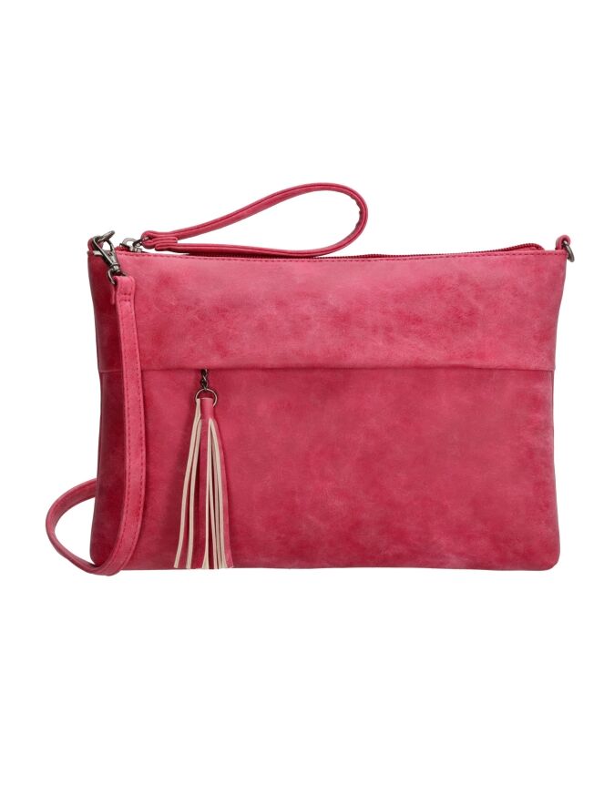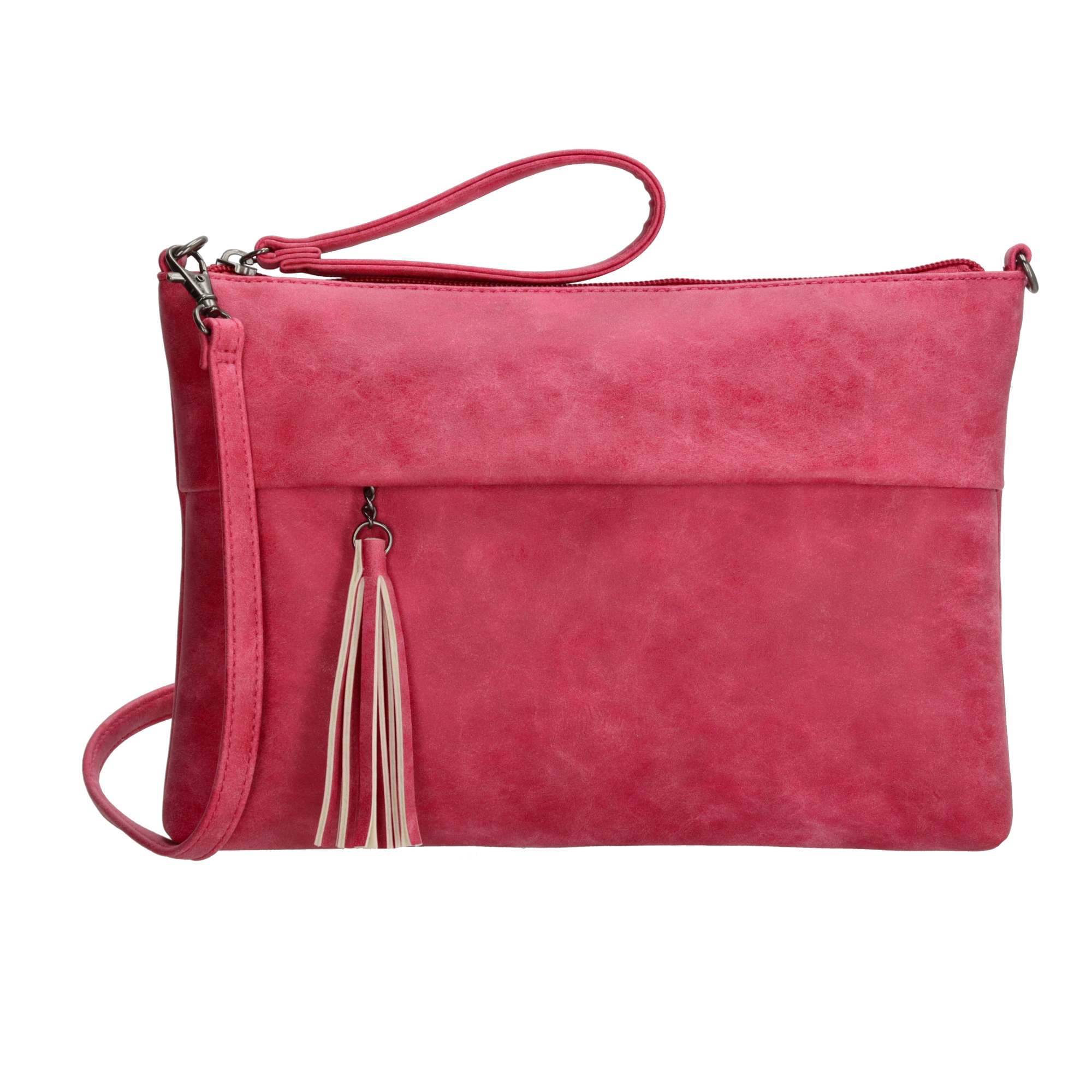 Deze tas van BEAGLES in de knal kleur fuqsia heeft een sier kwast aan de voorste rits. Met het bijgeleverde hengsel kan er ook een schoudertas van gemaakt worden.
